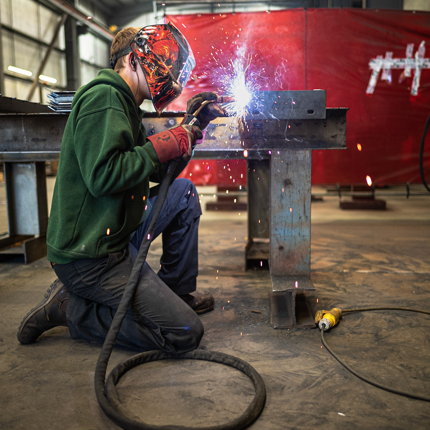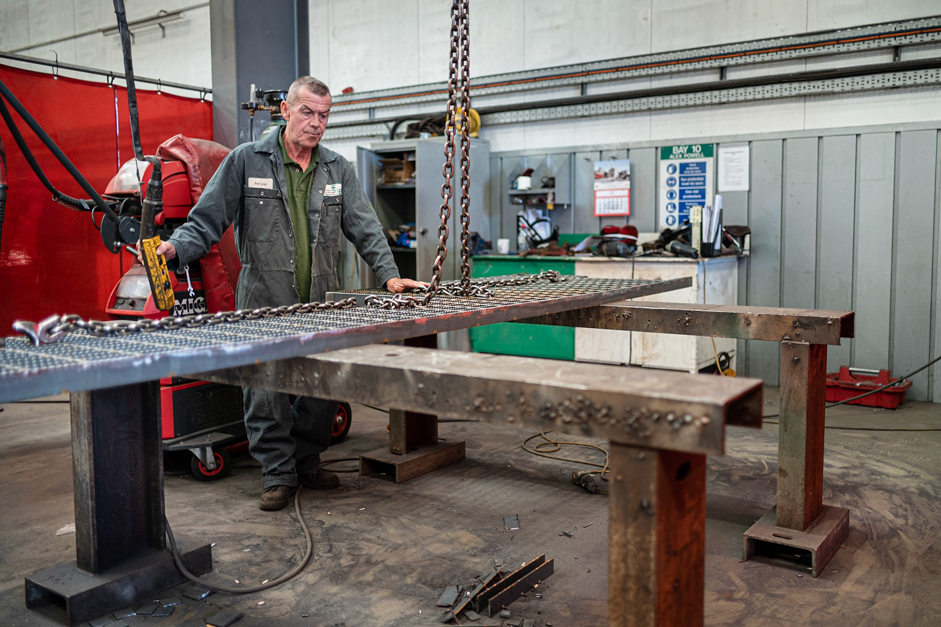 This collection of photos form part of a project to document a large scale visitor interpretation installation at the National Trust's site at Sutton Hoo in the UK. One of the instalments is a tall viewing tower for visitors to use. The following images were taken at the engineering company who were contracted to manufacture the structure. The next stage in its photo documentation will be when the tower is erected on site at Sutton Hoo.